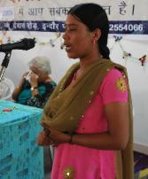 Hindu Tomar, from Alirajpur district, showed the audiance some of the items of clothing she learned to make in the cutting and tailoring training