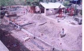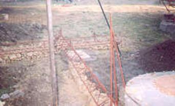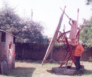 The pictures above and above left show the hastily laid foundation and the new alignment frame for the reflector dish.