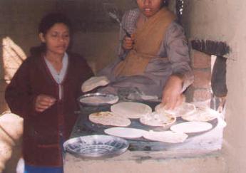 system of the trainees helping to cook the chapattis on the wood stove after 6:00 p.m.